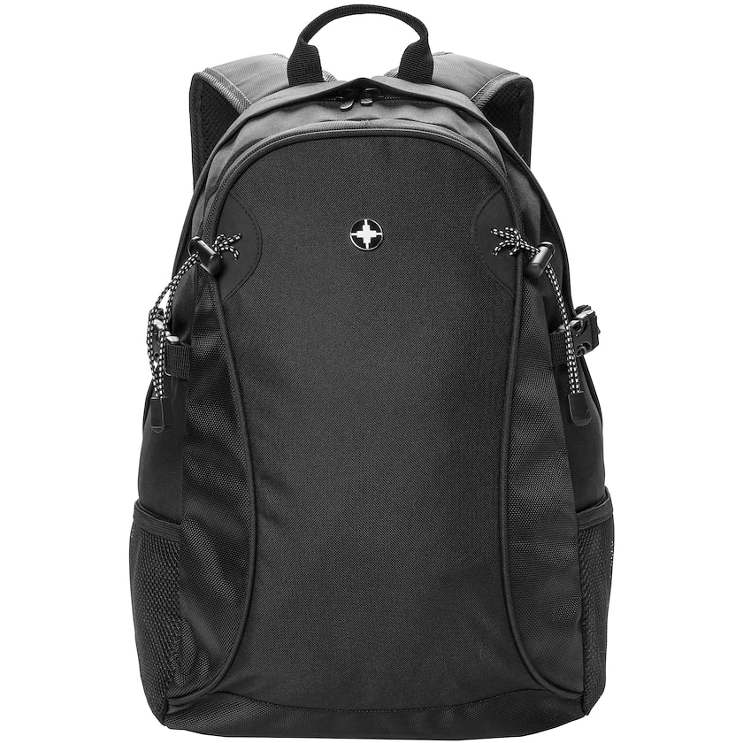 Sporttinen Swiss Peak-reppu. Repussa on pehmustettu selkäpaneeli ja sivuilla verkkotaskut. Reppu on täysin PVC-vapaa.