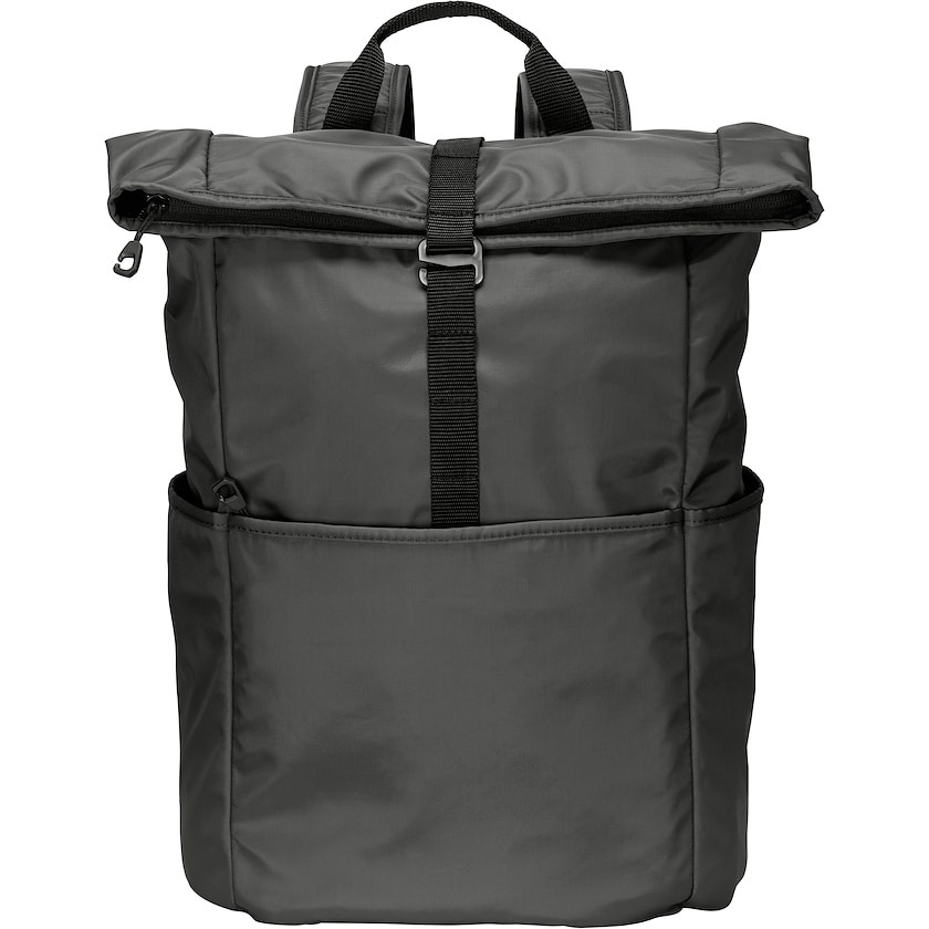Kasaan rullattava reppu valmistettu kestävästä materiaalista. Sisäpuolella on tasku 15 tuuman läppärille. Läppä suljetaan metallikoukulla, joka pitää repun kasassa myös rullattuna. Edessä on vetoketjutasku ja sivuilla sivutaskut. Selkäpuoli ja olkahihnat ovat pehmustetut ja hengittävät parhaan mahdollisen käyttömukavuuden takaamiseksi.