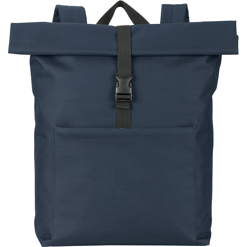 Edullinen roll-top-reppu etutaskulla. Sisällä on tasku 17,3 tuuman kannettavalle tietokoneelle.