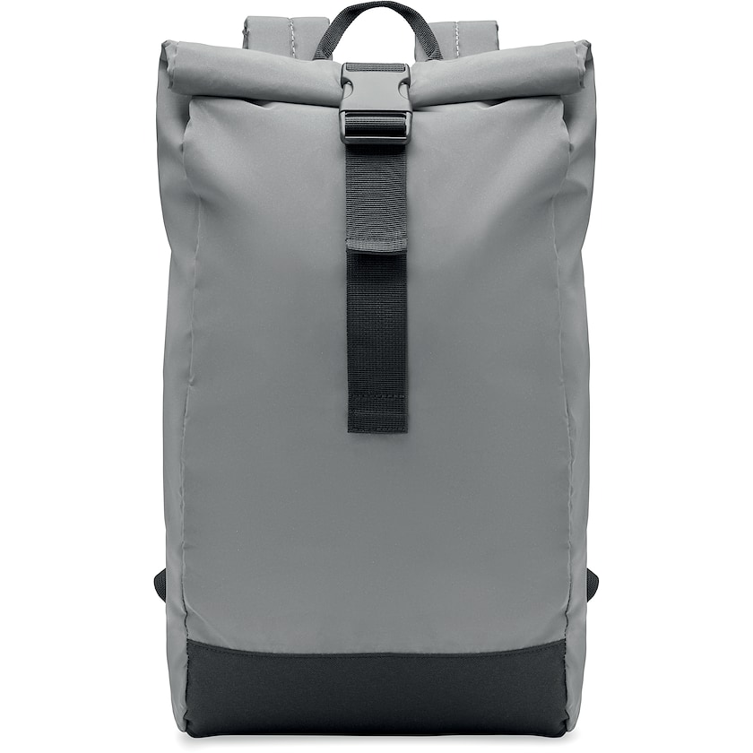 Rullattava reppu erittäin heijastavalla kankaalla. Selkä, olkaimet ja pohja ovat pehmustetut. Edessä vetoketjullinen säilytystasku. Vain 1-väripainatus on mahdollinen.