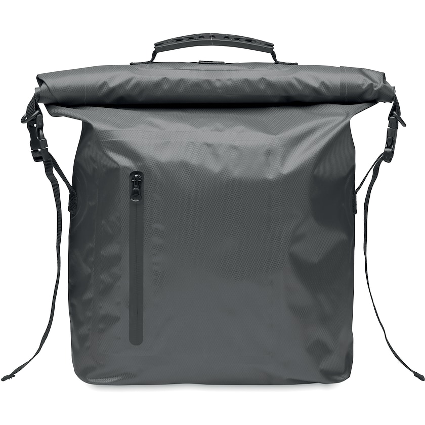Vedenpitävä roll-top-reppu painatuksella. Scio on valmistettu ympäristöystävällisestä rPET:stä ja sen tilavuus on 30 litraa. Edessä pienempi vetoketjullinen tasku. Tämä on reppu sinulle, joka todella haluat pitää tavarasi kuivina.