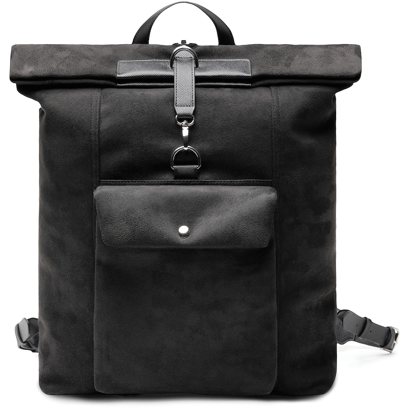 Ajattomasti muotoiltu tietokonereppu Vingalta. Repussa on useita taskuja ja kansia, jotka sulkeutuvat magneettisulkimilla. Päällyskangas on keinotekoista mokkanahkaa, joka on valmistettu kierrätetystä polyesteristä.