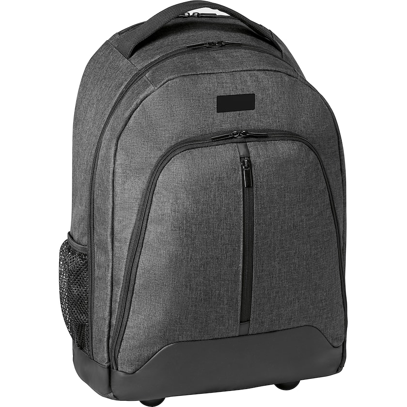 Trolley-reppu vedenkestävällä kankaalla. Repussa on 15,6 tuuman tietokonetasku, pehmustetut olkaimet ja selkäpuoli, sekä teleskooppikahva. Kustomointi joko painatuksena reppuun, tai laserkaiverruksena repun metallilaattaan.