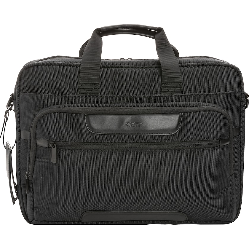Monipuolinen tietokonelaukku kierrätyspolyesteristä. Laukussa on tyylikkäät keinonahkaiset yksityiskohdat. Pehmustettuun tietokonetaskuun mahtuu 15,6 tuuman kannettava tietokone.