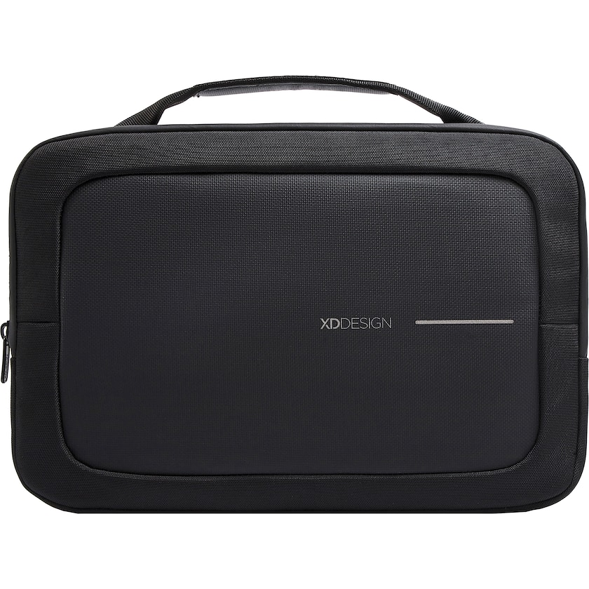 XD Designin tietokonelaukku ympäristöystävällisestä kankaasta. Laukkuun mahtuu 14 tuuman kannettava tietokone. Kangas on valmistettu ympäristöystävällisestä rPET-materiaalista ja on vettähylkivä. Sisävuori on valmistettu pehmeästä fleecestä.