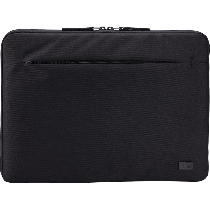 Kierrätyspolyesteristä tehty tietokonekotelo omalla logolla. Sopii useimmille 14 tuuman kannettaville tietokoneille. Edessä vetoketjutasku pikkuesineille.