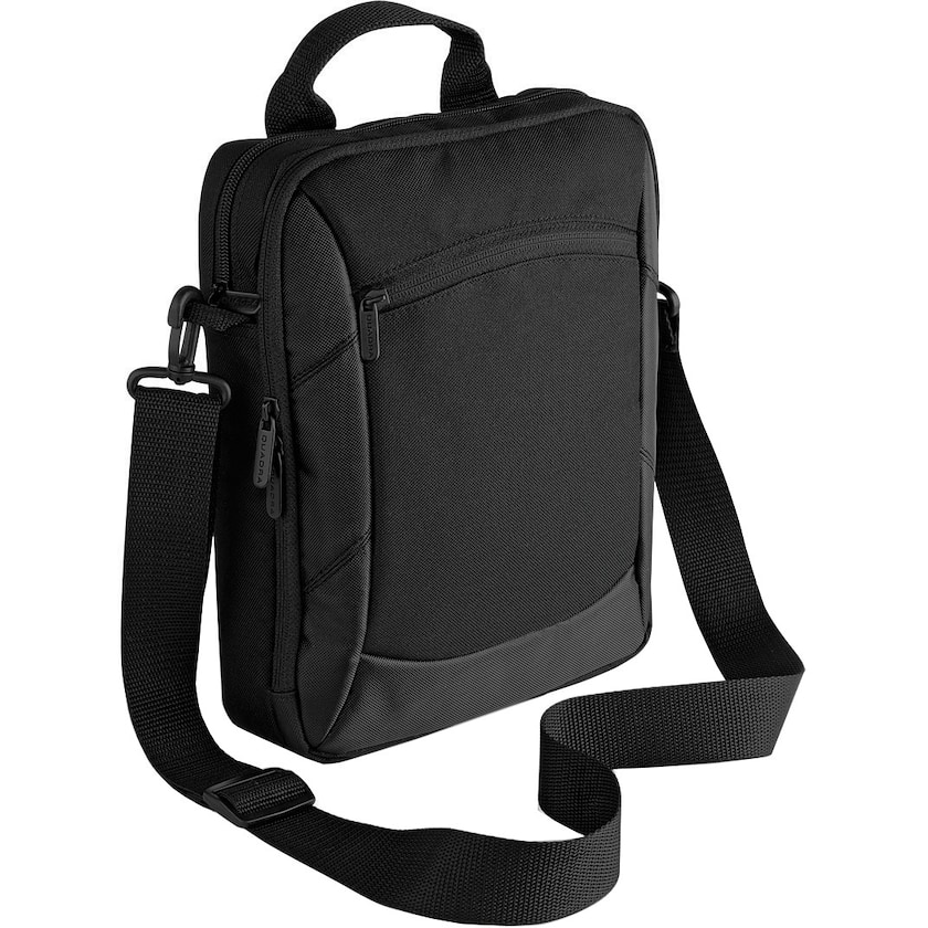 Käytännöllinen iPad-laukku pehmustetulla lokerolla, johon mahtuu iPad®. Laukussa on useita taskuja ja säädettävä ja irrotettava olkahihna sekä kätevä kantokahva.