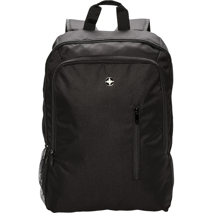 Ergonomisesti muotoiltu tietokonereppu laatumerkiltä Swiss Peak. Repun pehmustettuun tietokonetaskuun mahtuvat useimmat 17 tuuman kannettavat tietokoneet. Lisäksi repussa on useita käteviä lokeroita ja taskuja pienemmille tavaroille, sekä sivutasku juomapullolle. Täysin PVC-vapaa tuote.