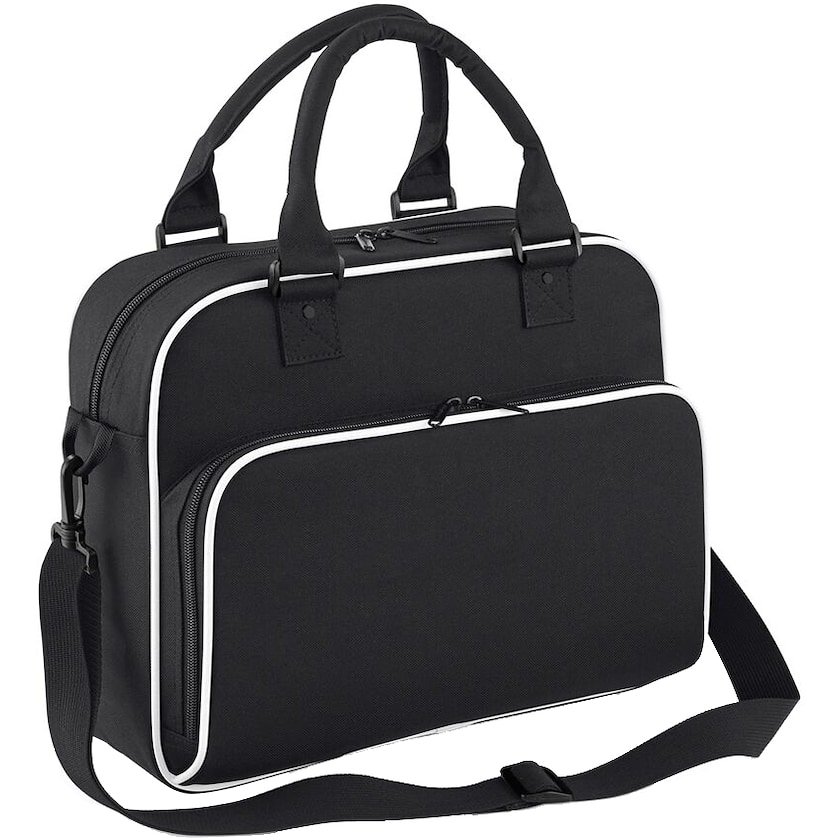 Pieni urheilulaukku retromuotoilulla. Kassi kulkee niin olalla kuin kädessäkin. Olkahihna on irroitettava. Laukun sisällä on verkkotasku pienemmille arvoesineille.