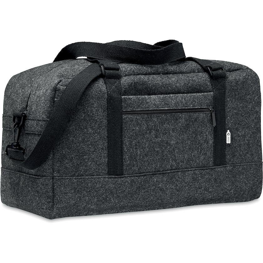 Ympäristöystävällinen urheilulaukku huovasta. Kangas on valmistettu kierrätetyistä PET-muovipulloista. Edessä pieni tasku. Laukun olkahihna on irroitettava ja säädettävä.
