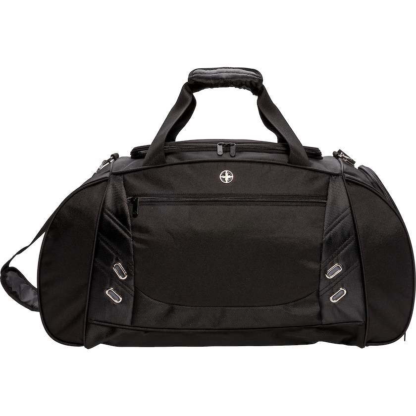 Korkealaatuinen urheilulaukku merkkivalmistajalta Swiss Peak. Laukussa on tilava laukkuosa u-vetoketjulla, ilmastoitu lokero kengille sekä paikka juomapullolle. Etupuolella on vetoketjullinen tasku esim. kännykälle tai muille arvoesineille. Olkahihna on säädettävä. Laukku on täysin PVC-vapaa ja tästä syystä ympäristöystävällinen.