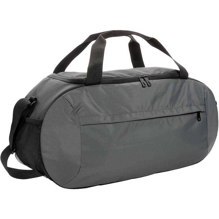 Ympäristöystävällinen urheilulaukku rPETistä. Modernissa laukussa on suuri päätasku ja sivulle pienempi vetoketjutasku. Muodikas treenikassi on hyvä ympäristövalinta!