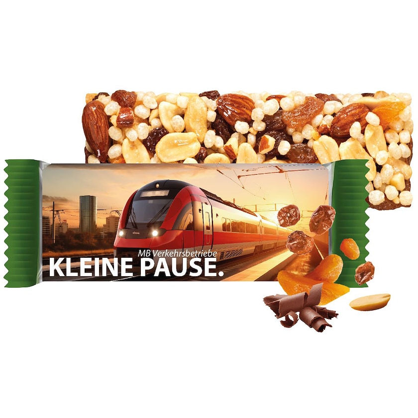 Vegaaninen ja gluteeniton energiapatukka Eat Naturalilta. Energiapatukka sisältää maapähkinöitä, kookosta ja tummaa suklaata. Painatus tehdään pahvihylsyyn, joka pujotetaan alkuperäispakkauksen päälle.