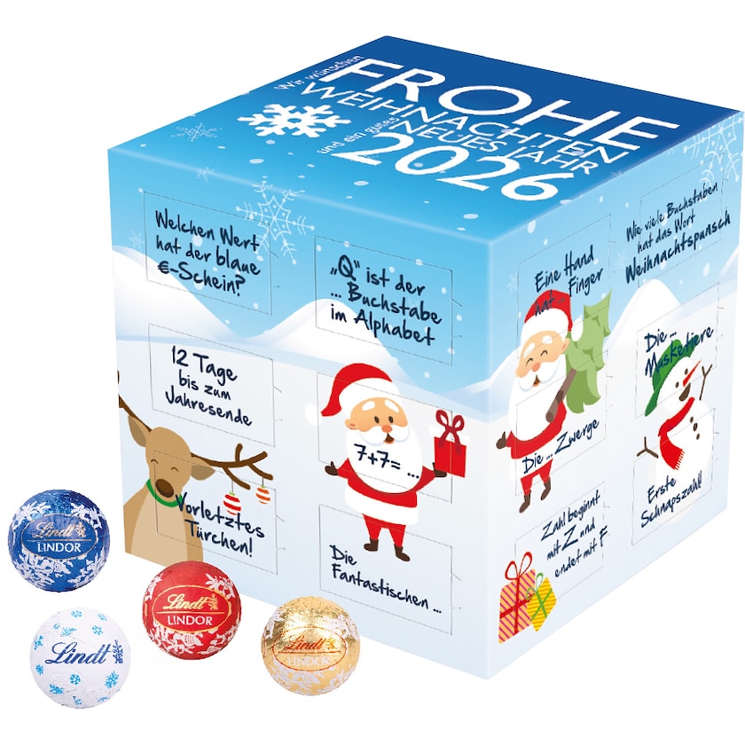 Kuutionmuotoinen joulukalenteri kokonaan paperista. Täytetty herkullisilla Lindt Lindor -suklaakonvehdeilla. Ei sisällä muovia ja on siksi parempi valinta ympäristön kannalta. Paperi tulee FSC-sertifioiduista metsistä.