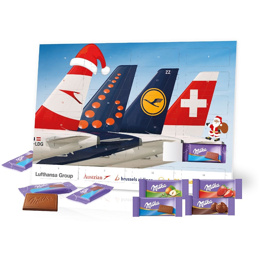 Adventtikalenteri herkullisella Milka-suklaalla. Kalenteri on tehty FSC-sertifioidusta kartongista, ja sisäpuolen lokerikko kierrätysmateriaalista. Koko tuotantoprosessi on ilmastoneutraali. Joulukalenteri sisältää sekoituksen suklaamakuja Alpenmilch, Haselnuss, Crème au Cacao ja Erdbeere.