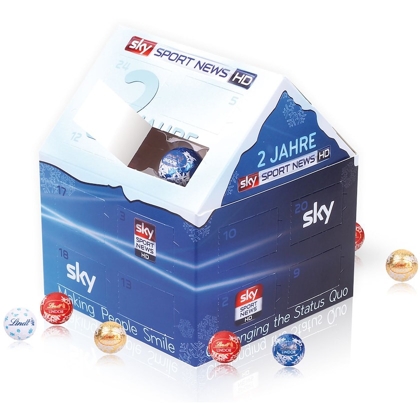 Talon muotoinen 3D-suklaakalenteri Lindt-suklaalla. Lataa painomalli ja suunnittele uniikki adventtikalenteri. Talo sisältää 24 kpl Lindt Mini -konvehteja viidessä eri maussa.