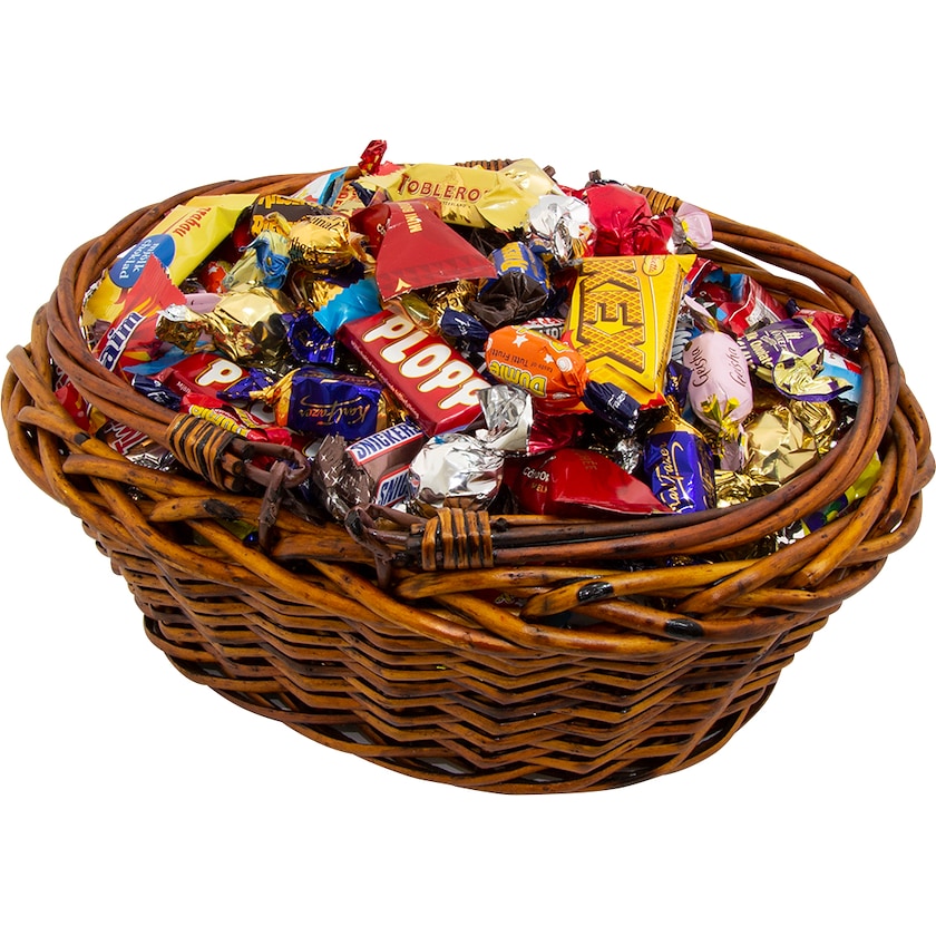 2500 grammaa laatumakeisia jouluiseen koriin pakattuna. Sisältönä mm. Daim, Geisha, Marianne, Dumle, Bounty, Twix ja Plopp. Korit toimitetaan rusetin kanssa sellofaaniin käärittyinä. Lisämaksusta lisäämme koriin painetun kortin toivomallasi tekstillä. Loistava joululahja asiakkaillesi!