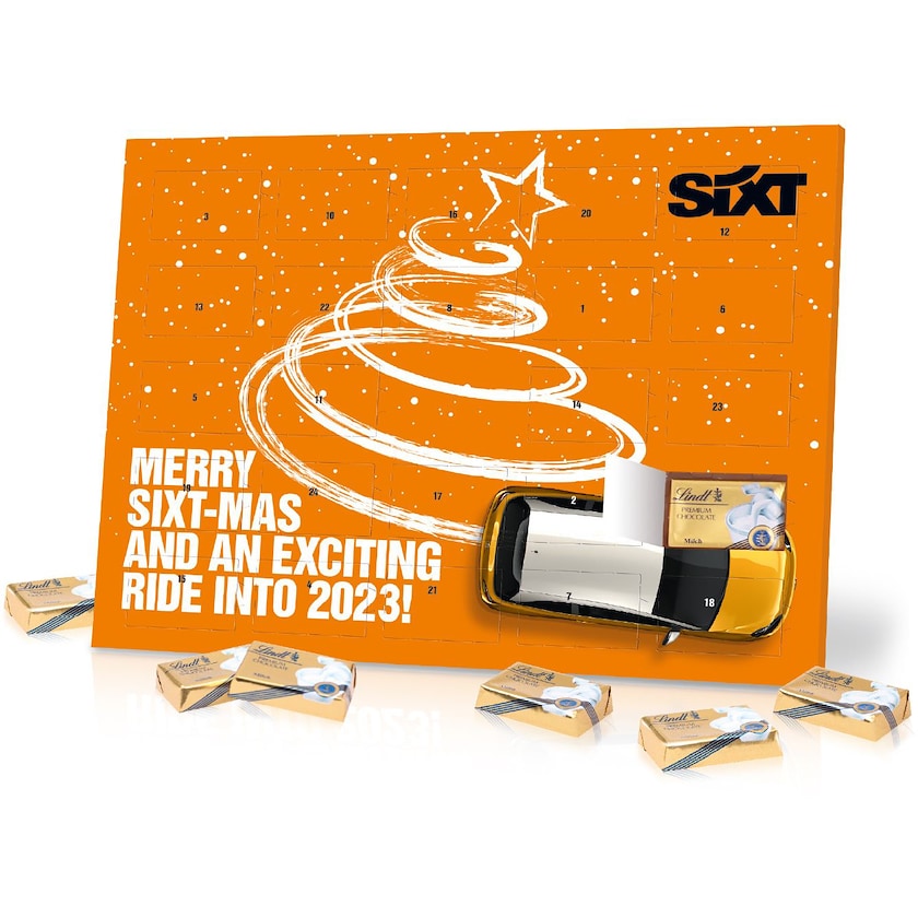Ympäristöystävällinen adventtikalenteri Lindt-suklaalla. Kartonki on FSC-merkittyä ja sisäpuolen lokerikko on valmistettu kierrätysmateriaaleista. Joulukalenterin kääntöpuolella on tuki, jonka avulla sen voi asettaa pystyyn pöydälle.