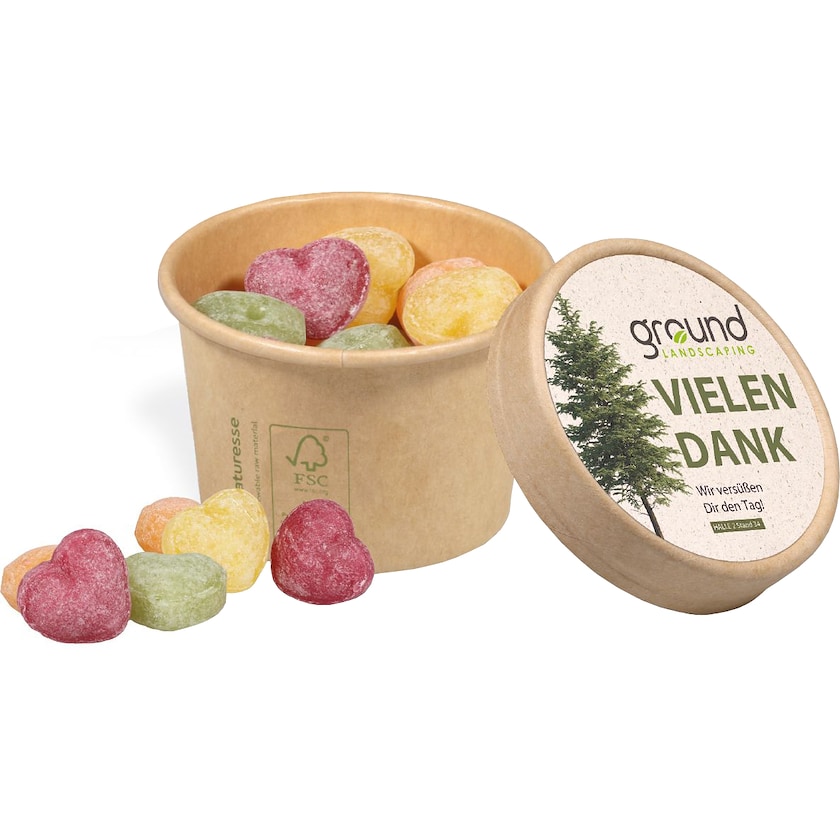 Karamellit on valmistettu korkealaatuisista raaka-aineista. Valittavanasi on kuusi eri makua. Karamellit on valmistanut Edel, makeisvalmistaja Baijerista. Painatus tehdään pyöreälle pahvialustalle, joka asetetaan kannen päälle. Purkki on valmistettu FSC-sertifioidusta paperista.