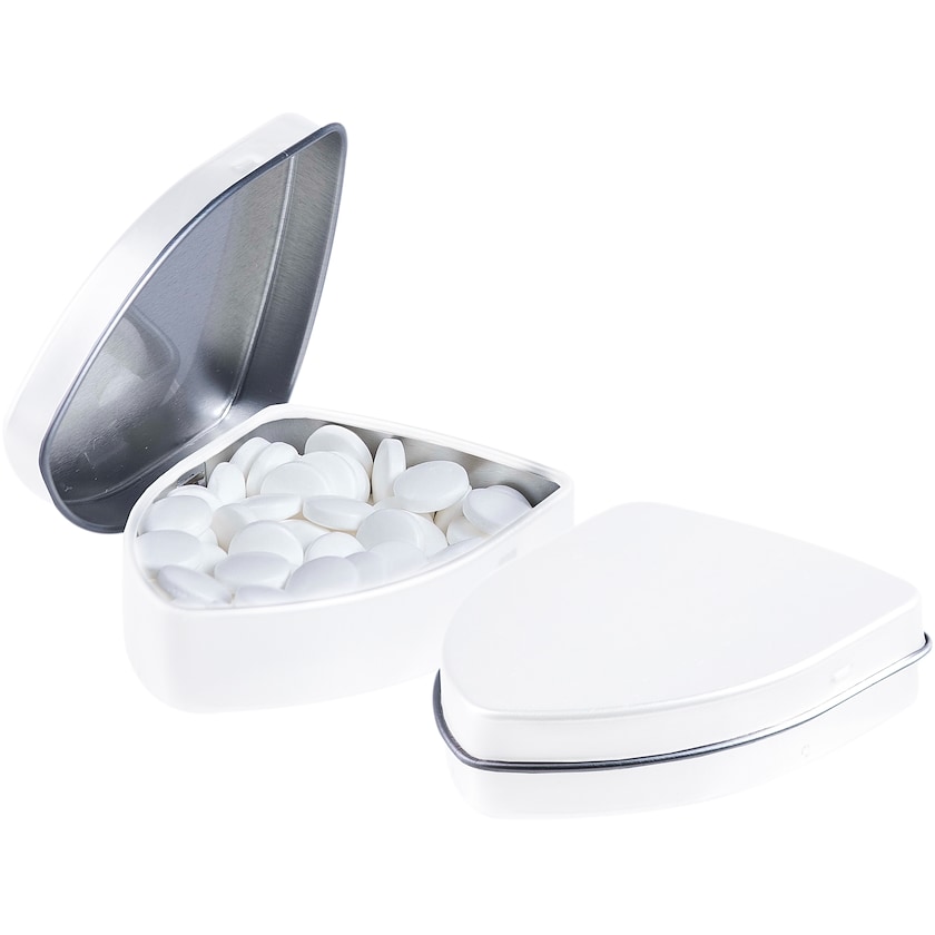 Metallirasiallinen raikkaita minttupastilleja. Saatavilla valkoisena ja hopeisena. Minttupastillit voi tilata myös sokerittomina.