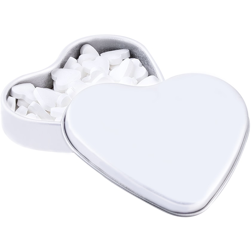 Anna rakkauden kukoistaa! Metallinen sydänrasia täynnä sydämenmuotoisia minttupastilleja.