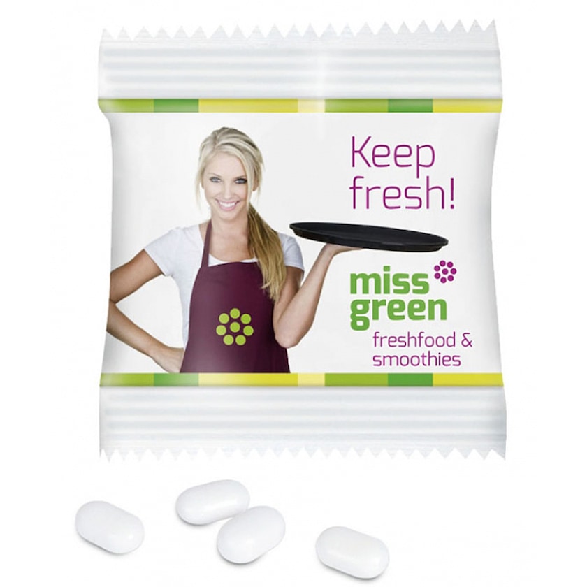Pieni pussi raikastavia Tic-Taceja. Pussi sisältää noin viisi grammaa mintun tai appelsiininmakuisia Tic-Taceja. Pakkaus on valmistettu paperista.