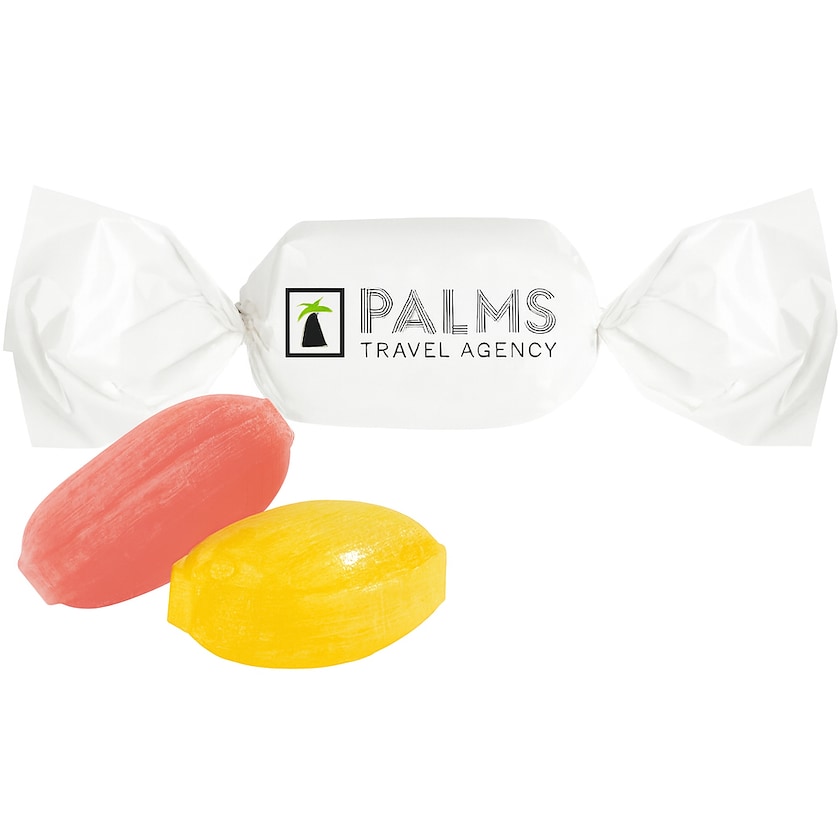 Makeinen, josta löytyy 9 eri makuvaihtoehtoa. Kaikki maut ovat vegaanisia. Nämä laadukkaat karkit ovat valmistettu Saksassa. Koko karkkipaperi painatetaan digipainatuksella. Erinomainen valinta, jos kaipaat vegaanista mainoskarkkia.