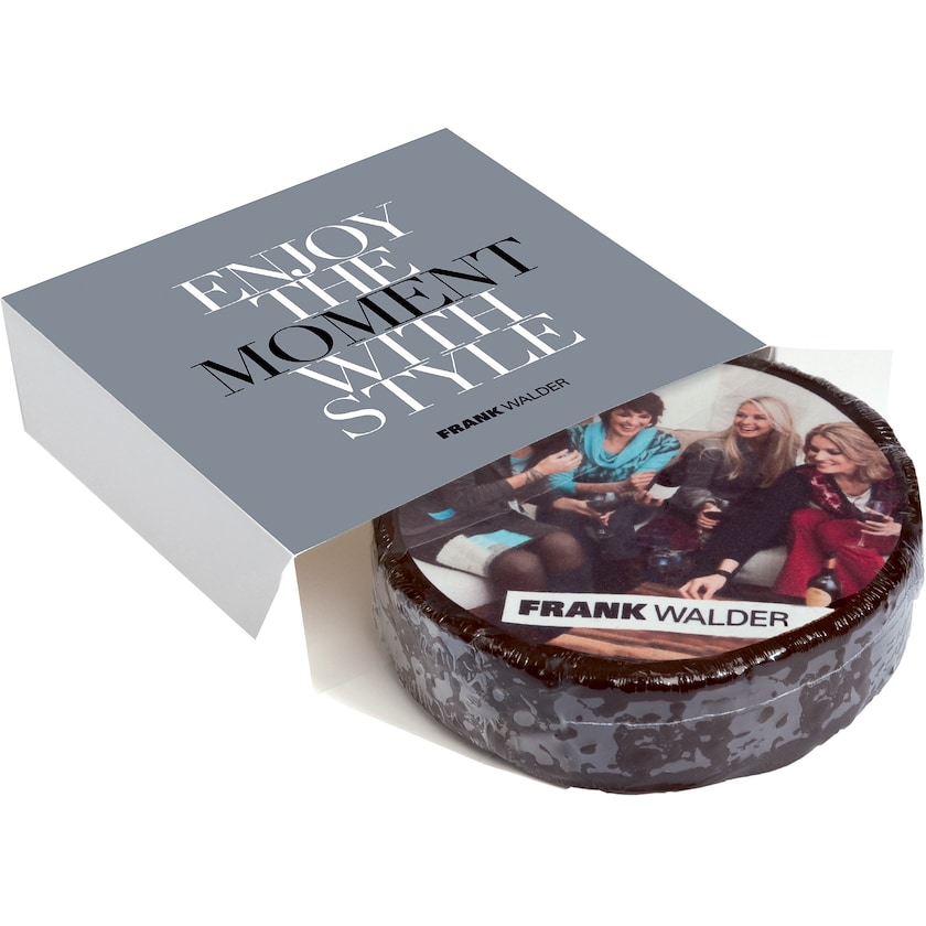 Kakku digipainatetulla yläpuolella. Lienz kakku on saatavilla suklaan ja appelsiinin makuisena. Painatus tehdään karamellivärillä. Toimitetaan digipainatuksella varustetussa pahvilaatikossa, jonka painatus tehdään toiveidesi mukaan. Säilyvyysaika lasketaan toimituspäivästä alkaen. Tilaa kakut painatuksella Axon Profililta!