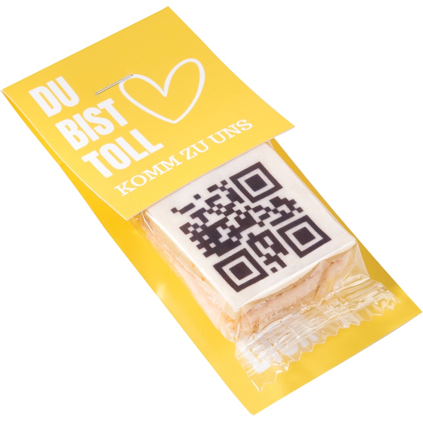 Digipainatuksella varustettu keksi, joka on kiinnitetty korttiin. Saatavana useita makuja. Painatus tehdään karamellivärillä ohuelle sokerikerrokselle. Kortti (178 x 55 mm) digipainatus täysin toiveidesi mukaan.