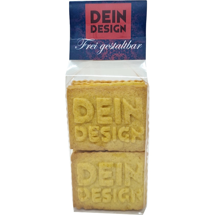 8 kpl käsintehtyjä keksejä logolla. Keksit on leivottu Saksassa täysin ilman säilöntäaineita, väriaineita tai muita lisäaineita. Valittavanasi on neljä herkullista makua ja kolme erilaista keksin muotoa. Logosi erottuu ainutlaatuisella 3D-tehosteella. Keksit toimitetaan ilmastoneutraalissa läpinäkyvässä pussissa, jossa on paperietiketti omalla painatuksella.