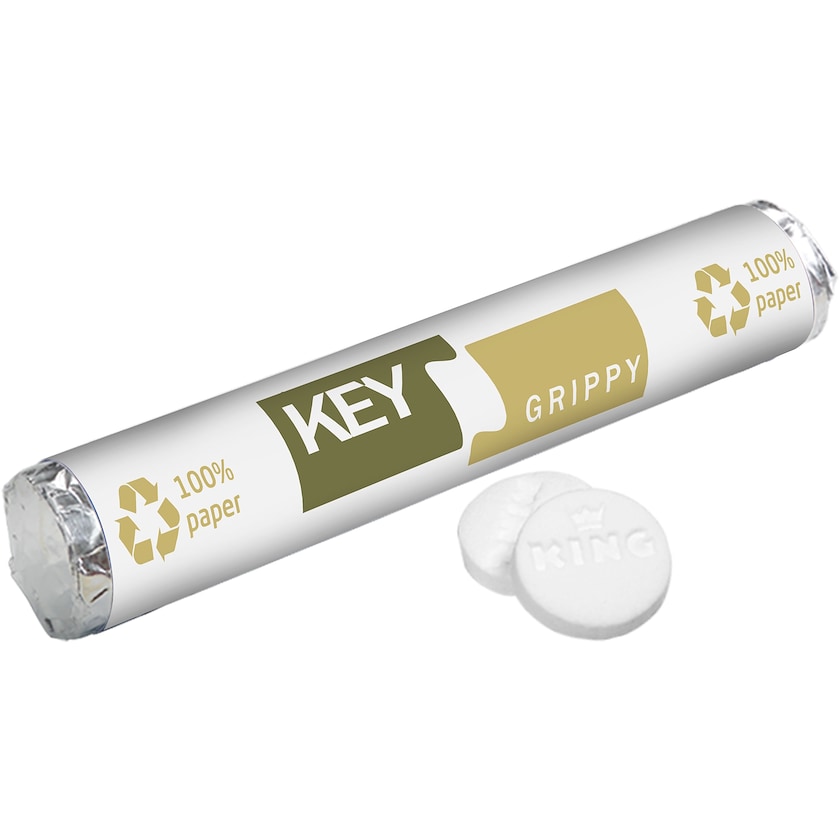 Raikkaita minttupastilleja kustomoitavalla käärepaperilla. Materiaalina kierrätetty paperi. Loistava lahja messuille tai tapahtumiin.