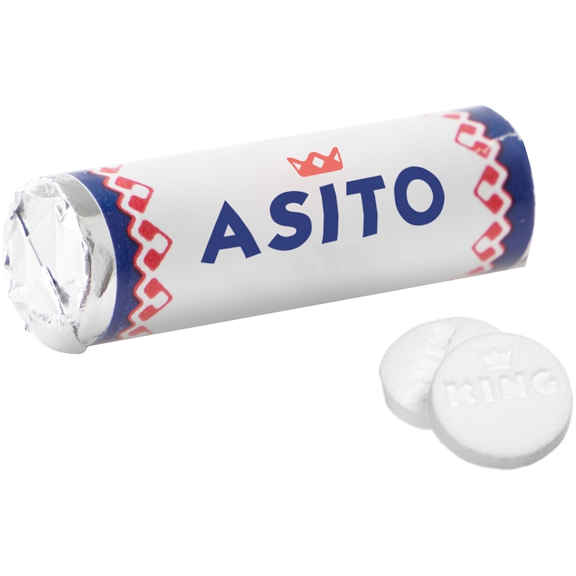 Pieni rulla täynnä 9 raikastavaa minttutablettia. Koko rullaa ympäröivään paperiin tehdään painatus toiveidesi mukaan.
