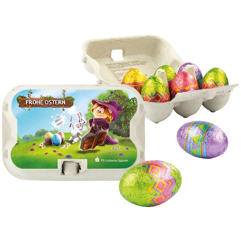 Munakenno, joka sisältää 6 suklaamunaa. Munien paino yhteensä n. 37 g ja ne on valmistettu hienosta maitosuklaasta. Digipainatus s tehdään munakennon kanteen tulevaan etikettiin.