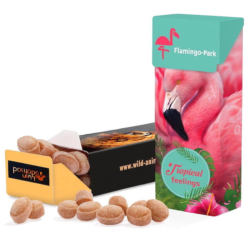Moderni pastillirasia, joka sisältää 25 grammaa makeisia. Rasia digipainetaan ja toimitetaan suojaavassa sellofaanipakkauksessa.