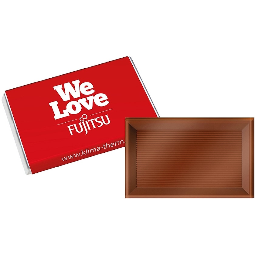 Suklaa-suorakulmio sisältää hienointa Belgialaista suklaata. Päälliseen tulee digipainatus. Minimitilausmäärä on vain 500 kpl.