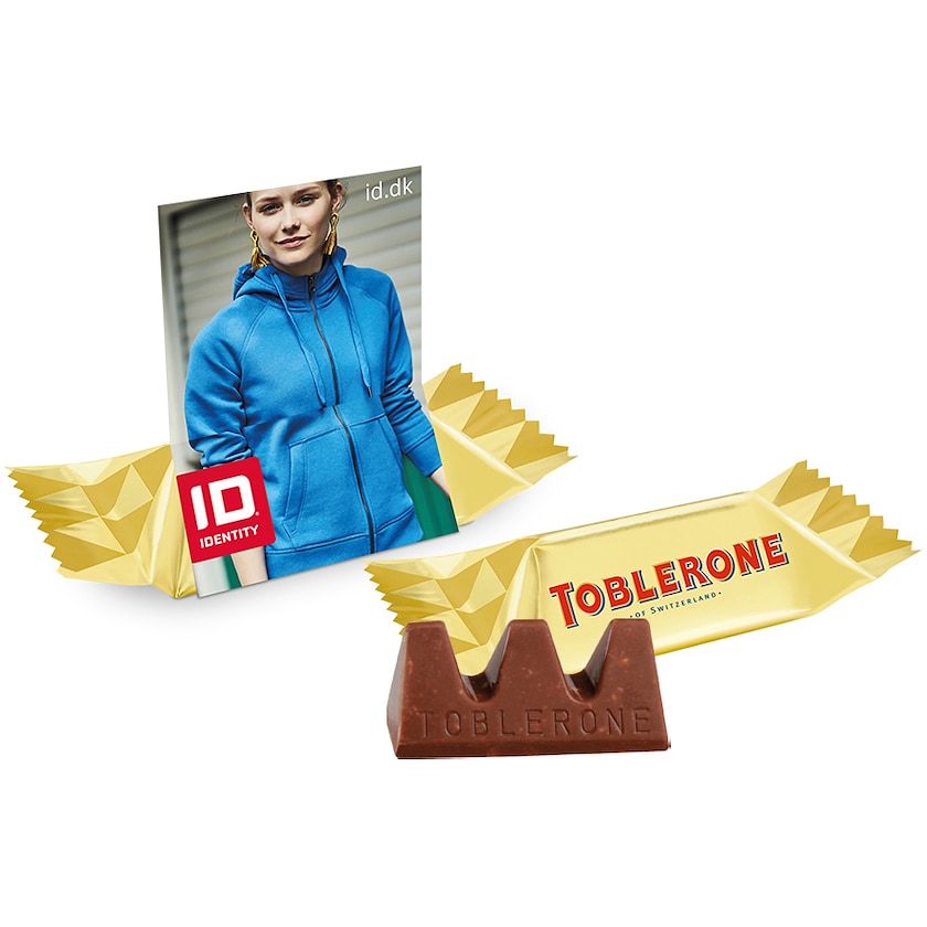 Toblerone Mini ja kartonkinen mainoskyltti. Koko pahvi painetaan toiveidesi mukaisesti.