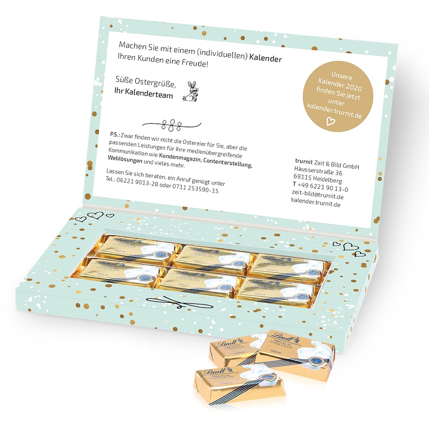 Suklaarasia täynnä hienoa Lindt-maitosuklaata. Suklaarasia digipainatetaan toiveidesi mukaisesti.
