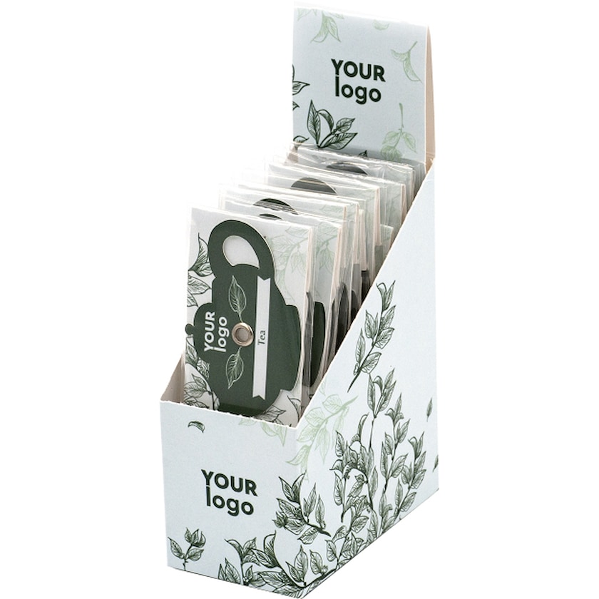 Paperipakkaus, joka sisältää 10 pussia Shelford-teetä. Painatus tehdään pakkaukseen, sekä jokaisen teepussin paperietikettiin. Valittavissa neljä eri makua.