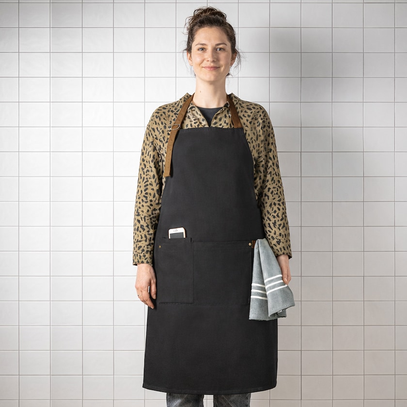 Esiliina puuvillacanvas-kankaasta metallisilla yksityiskohdilla. Esiliinassa on kolme kätevää taskua ja sivuhalkio, johon voi ripustaa esimerkiksi keittiöpyyhkeen. Toimitetaan luonnollisen värisessä pahvilaatikossa, joka on valmistettu ympäristömerkitystä kartongista.