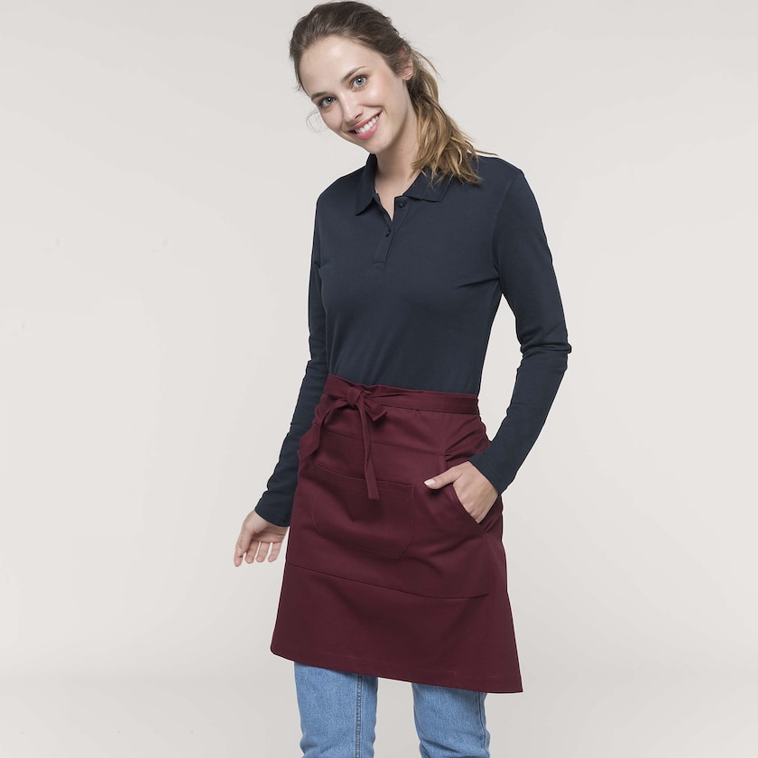 Puuvillainen esiliina taskulla 100% puuvillasta Essu on 50 cm pitkä ja 90 cm leveä.