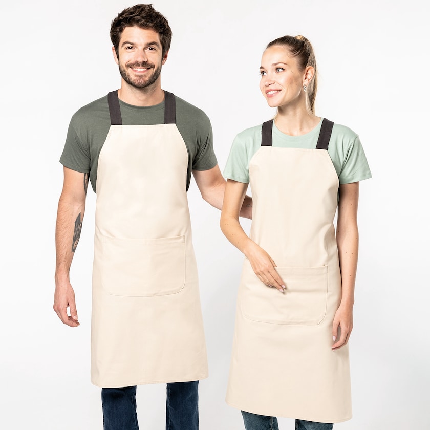 Luomupuuvillainen esiliina. Kankaassa on käsittely, joka antaa trendikkään vintage-efektin. Käsittelyn vuoksi eri tuotantoerissä voi olla hieman erilainen värisävy. Esiliina on 90 cm pitkä ja 76 cm leveä.