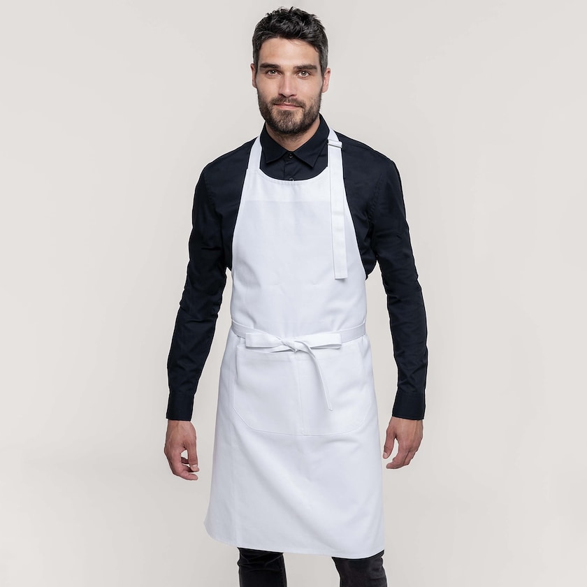 Laadukas esiliina ammattikäyttöön. Essun voi pestä 60 asteessa tavallisessa pesukoneessa tai teollisuuskoneessa strandardin ISO 15797 mukaisesti. Pituus 90 cm ja leveys 76 cm. Esiliinassa on kaksiosainen tasku.