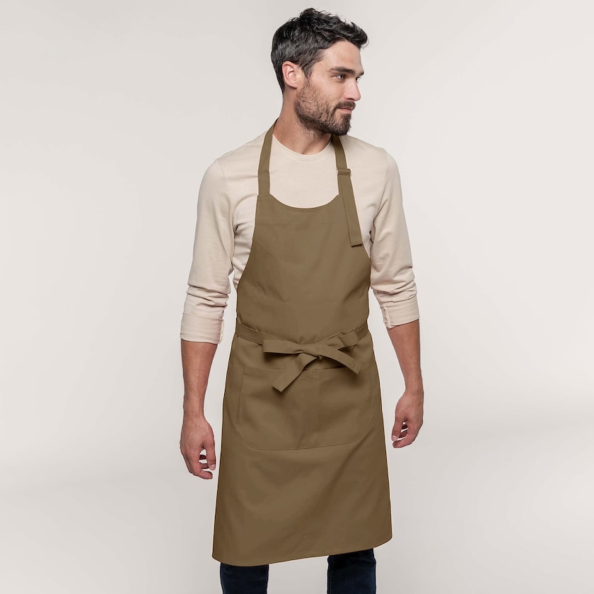 Pitkä esiliina puuvillasta. Saatavilla monissa eri väreissä. Esiliinan voi pestä 60 asteessa. Essun etupuolella on kaksiosainen tasku. Mitat: pituus 90 cm ja leveys 76 cm.