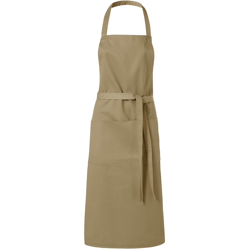 Täyspitkä esiliina kestävää twillkangasta. Kätevä tasku vatsan kohdalla.