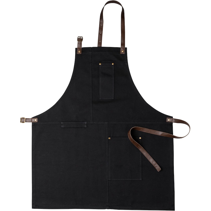 Tyylikäs puuvillaessu. Essussa on keinonahkaiset remmit ja kaksi taskua.