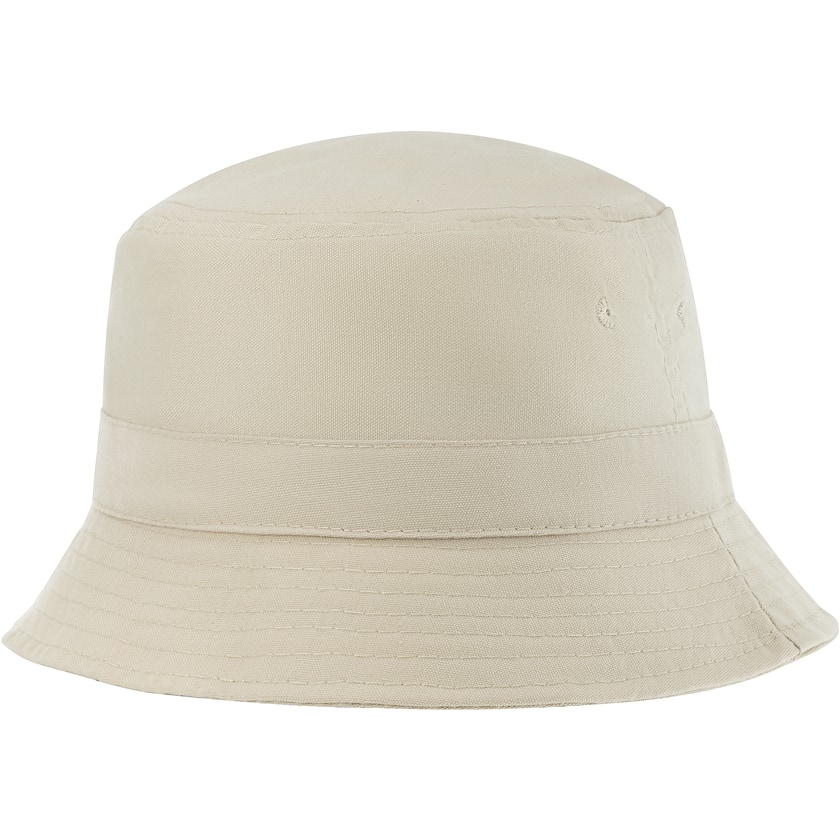 Kangashattu puuvilla-polyesterikankaasta. Merkkaus painatuksena. Klassinen kalastajanhattu kestävästä materiaalista.