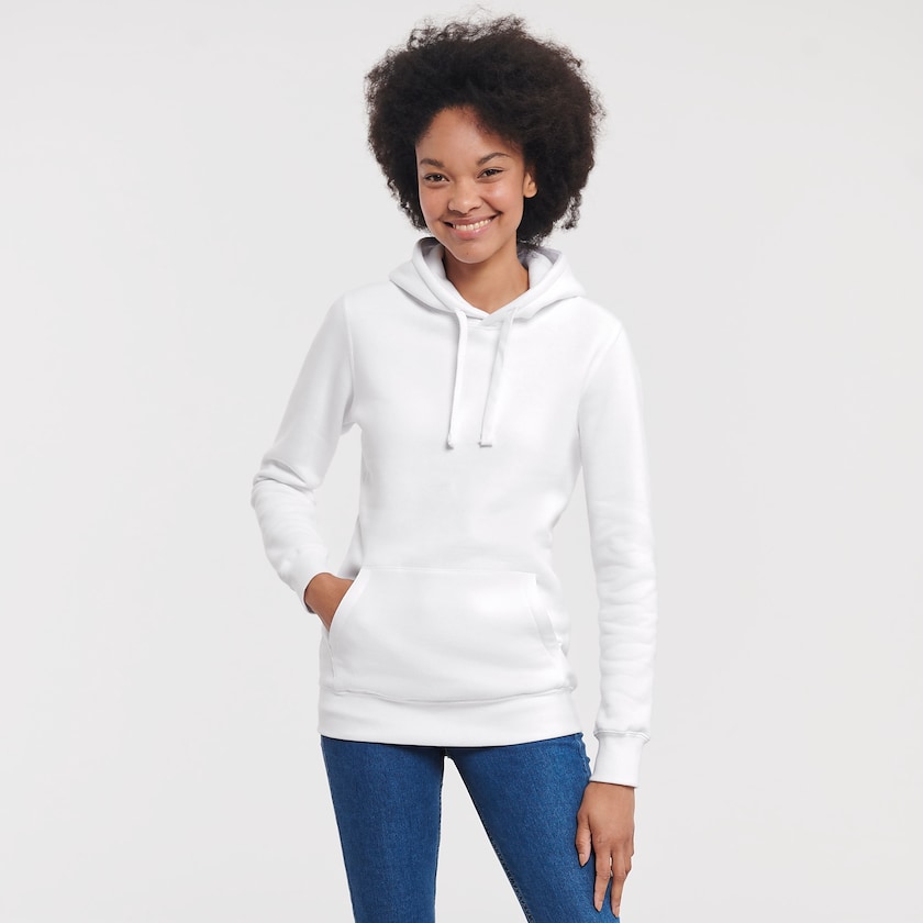 Korkealaatuinen huppari, jossa on naisellinen leikkaus. Saatavilla myös miesten hupparina. Tuotteet toimitetaan yksittäispakattuina muovipusseissa.