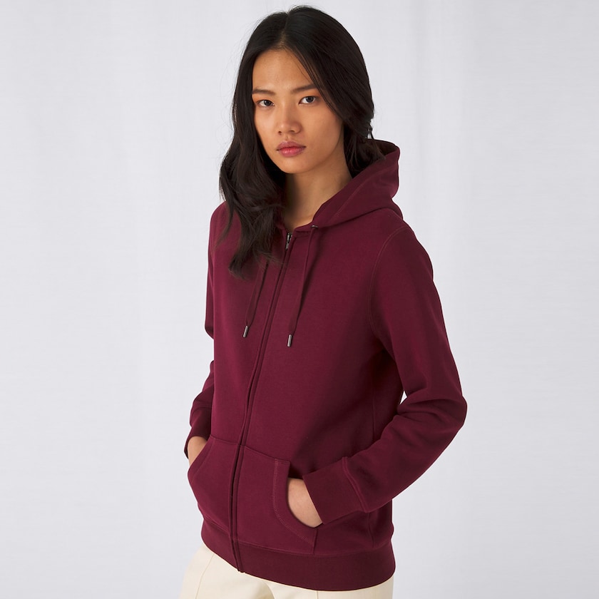 Ylellinen B&C-huppari vetoketjulla. Hupparin kangas on pehmeää sekoitemateriaalia. Saatavilla myös miesten mallina. Kangas on 80% puuvillaa ja 20% polyesteriä, paitsi värissä Heather Grey, joka on 75% puuvillaa, 21% polyesteriä ja 4% viskoosia, ja värissä Heather Mid Grey, joka on 60% puuvilla ja 40% polyesteriä.