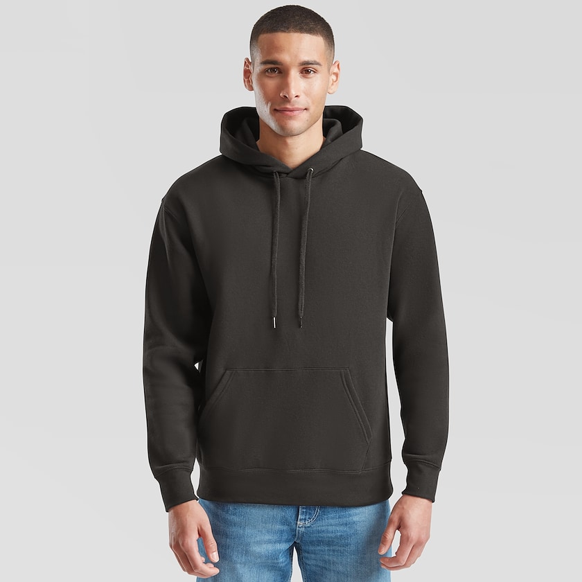Kestävä Fruit of the Loom -huppari. FOTL Premium Hooded Sweat -hupparissa on vähän enemmän polyesteria kuin klassisessa FOTL Classic Hooded Sweat -paidassa, mikä tekee siitä kestävämmän ja paremmin pesuja kestävän. Toimitetaan muovipusseissa yksittäispakattuina.