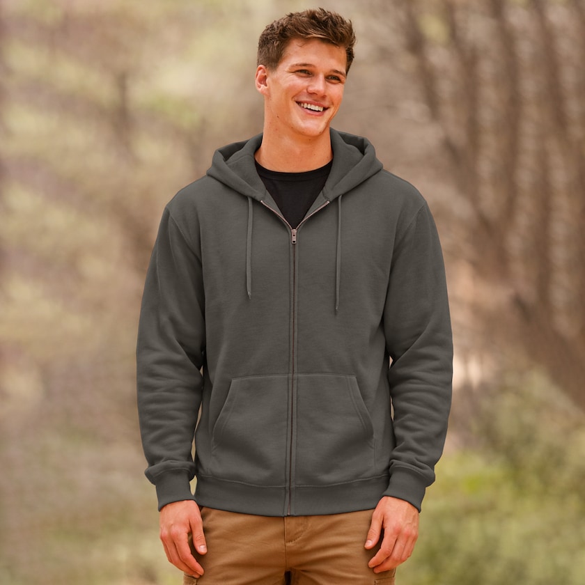 Kestävä Fruit of the Loom -vetoketjuhuppari. FOTL Premium Hooded Sweat Jacket -hupparissa on vähän tavallista enemmän polyesteria, mikä tekee siitä kestävämmän. Paidat toimitetaan muovipusseissa yksittäispakattuina. Saatavilla myös naisten mallina.